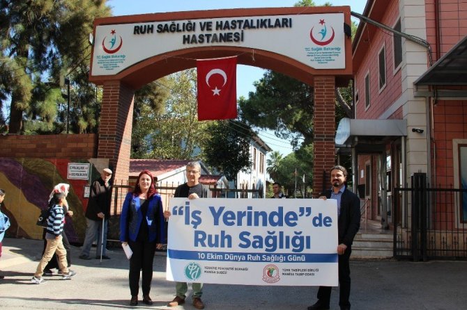 İlki 1992 yılında kutlanan Dünya Ruh Sağlığı Günü dolayısıyla Manisa Ruh Sağlığı ve Hastalıkları Hastanesi önünde bir basın açıklaması düzenlendi. Basın açıklamasını okuyanTürkiye Psikiyatri Derneği Manisa Şube Başkanı Uzm. Dr. Selin Demet, “10 Ekim Dünya Ruh Sağlığı Gününde ülkemizin ve dünyanın önemli ruh sağlığı sorunlarının, ruh sağlığı politikalarının ve ilişkili konuların yeniden toplumun ve kamuoyunun gündemine taşınması, farkındalık oluşturulması ve çözüme kavuşturulması amaçlanmaktadır. Bu yıl Dünya Sağlık Örgütü tarafından belirlenen 10 Ekim Dünya Ruh Sağlığı Günü teması ‘İş Yerlerinde Ruh Sağlığı yani Çalışanın Ruhsal İyilik Hali’dir. Dünya Sağlık Örgütü verilerine göre dünyada 300 milyondan fazla kişi depresif bozukluklar, 250 milyondan fazla kişi kaygı bozukluklarından muzdariptir. Her iki hastalığın neden olduğu üretkenlik kaybının dünya ekonomisine olan maliyeti bir trilyon Amerikan dolarından fazladır. İşsizlik, ruhsal hastalıkların oluşumu için bir bilinen bir risk faktörüdür. Ancak olumsuz bir iş yaşamı da fiziksel ve ruhsal hastalıkların meydana gelmesine geniş bir zemin hazırlamaktadır. Olumsuz iş yaşamı, depresyon ve kaygı bozuklukları dışında alkol madde kullanım bozuklukları, devamsızlık, tükenmişlik gibi üretkenliği derinden etkileyen sonuçlar doğurabilmektedir.” dedi.