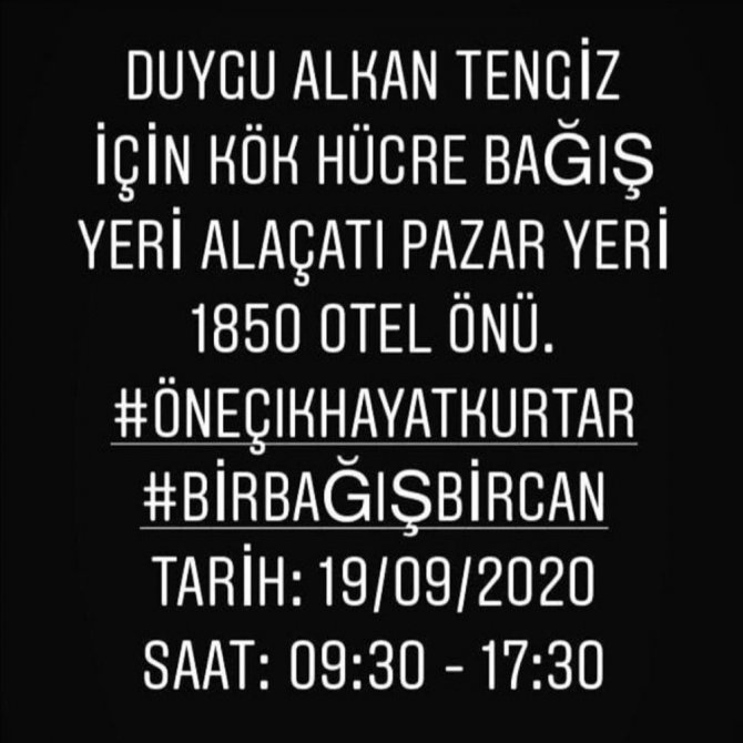 İzmir’deki özel bir hastanede kardiolog olarak görev yapan Prof. Dr. İstemihan Tengiz’in eşi ve iki çocuk annesi 42 yaşındaki Duygu Alkan Tengiz geçtiğimiz kasım ayında lösemi hastalığına yakalandı. Duygu Alkan Tengiz için aylarca kök hücre arandı. Araya pandemi dönemi girdi ve kök hücre bulunamayınca, 12 yaşındaki oğlu Tarduhan’a alınan ilik ile Mayıs ayında kök hücre nakil yapıldı. Tam iyileşti derken geçtiğimiz ay hastalığı yeniden ilerleyen Tengiz için Bodrum, Alaçatı ve İzmir’deki yakınları kök hücre ve kan bağışı kampanyası başlattı.