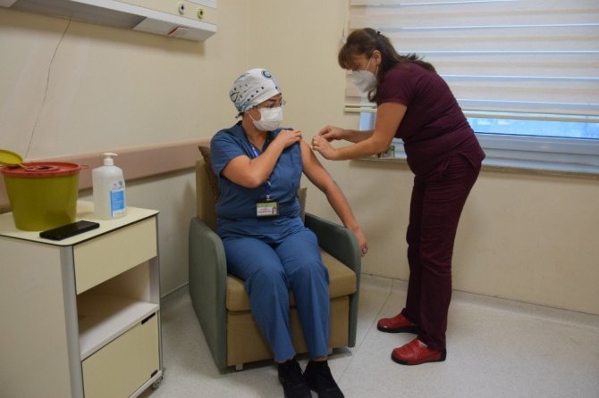 Düzce Üniversitesi Hastanesi’nde sağlık çalışanlarına aşı başlandı