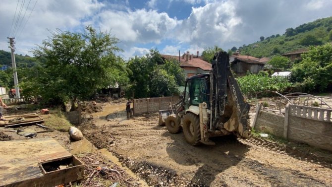 DÜZCE(İHA) – Düzce'de etkili olan sağanak yağış sel ve su taşkınına sebep oldu. Afetin yaşandığı bölgelerde selin izleri silinmeye başlanırken, Düzce'ye bağlı Kabalak köyünde de köylüler el birliği ile temizlik çalışması başlattı.