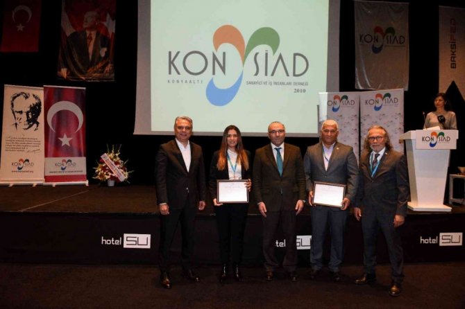 Başkan Uysal'a konuşmasının ardından KONYSİAD Başkanı İlhami Kaplan günün anısına plaket takdim etti. Toplantı hep birlikte hatıra fotoğrafının çekilmesiyle sona erdi.