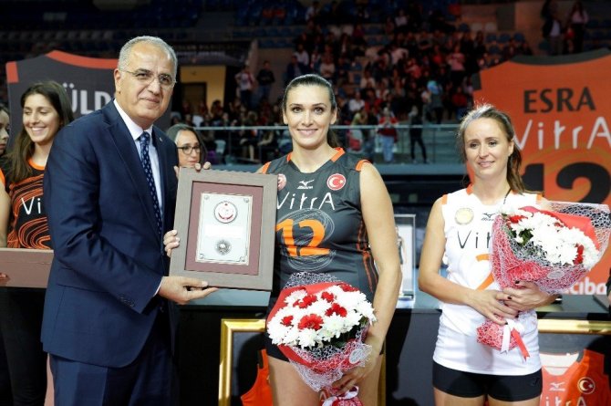 Eczacıbaşı Spor Kulübü Başkanı Faruk Eczacıbaşı ve Türkiye Voleybol Federasyonu Başkanı Mehmet Akif Üstündağ’ın yaptığı konuşmaların ardından, herkese destekleri için teşekkür eden Esra ve Gülden’e plaketleri takdim edildi.