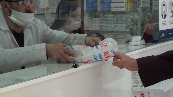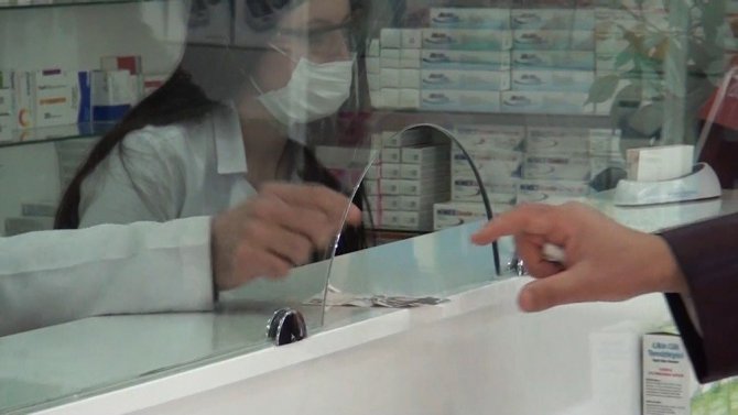 Kütahya’da korona tedbirleri kapsamında eczanelere camlı bankolar takılıyor, nöbetçi eczanelerde ise hasta içeriye girmeden kapıda hizmet veriyor.