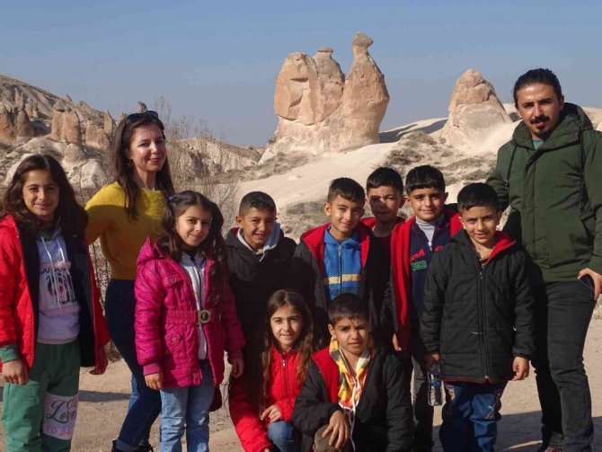 Eski Emek Mezrası İlkokulu Müdürü Mehmet Fatih Balkan da; " Balona bindik, bölgeyi gezdik, ata bindik, müzeyi gezdik, daha da devam ediyor program. Bu organizasyonda Kapadokya'yı hayal eden öğrencimiz kadar, bu hayali gerçekleşmesinde emeği geçen herkese teşekkür ediyorum" dedi. Resmi çizen Eda Nur Kavut da; "Kapadokya'yı gezmeyi çok istiyordum. Çizdiğim resmi öğretmenime gösterdim. Öğretmenim de çok beğendi. Şimdi Kapadokya'dayız. Burada en çok atları sevdim" ifadesini kullandı. Öğrencilerden Aleyna Yıldırım da arkadaşının çizdiği resim sayesinde Kapadokya'ya geldiklerini söyledi.