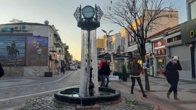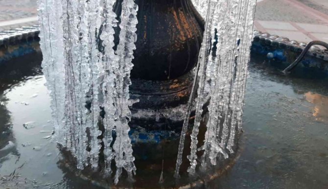 Edirne buz tuttu, süs havuzları dondu