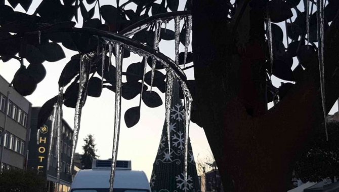 Balkanlar üzerinden gelen soğuk havanın etkisi altında kalan Edirne'de kar yağışı etkili olmazken, hava sıcaklığı ise sıfırın altında 7 dereceye kadar düştü. Adeta Sibirya soğuklarının yaşandığı kentte araç trafiğine kapalı olan Saraçlar Caddesi üzerindeki birçok süs havuzu ve su birikintilerinin olduğu yerlerdeki buzlanmalar görsel şölen oluşturdu.