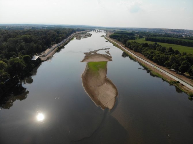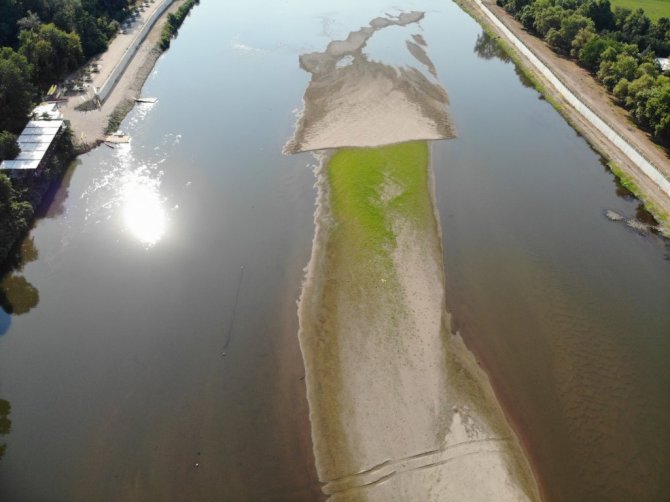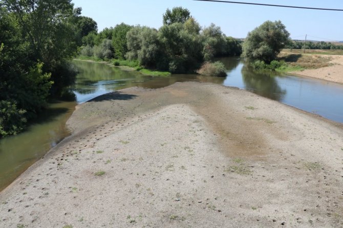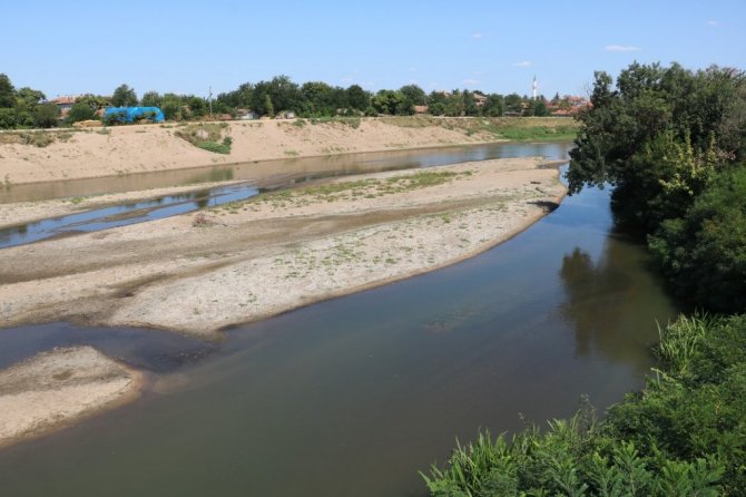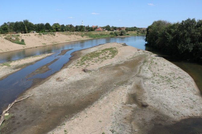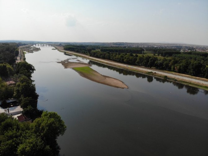 Meteoroloji Genel Müdürlüğü'nün temmuz ayına ilişkin meteorolojik kuraklık durumunu gösteren haritalarında "şiddetli kurak" olarak belirtilen Edirne'de, debisi dibi gören Meriç ve Tunca Nehri'nde kum adacıkları oluştu.