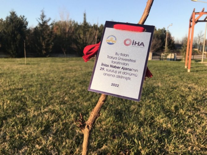 Edirne'de Trakya Üniversitesi Rektörlüğü tarafından oluşturulan "Basın Fidanlığı"na İhlas Haber Ajansı'nın 29'uncu yıl dönümü dolayısıyla fidan dikildi.