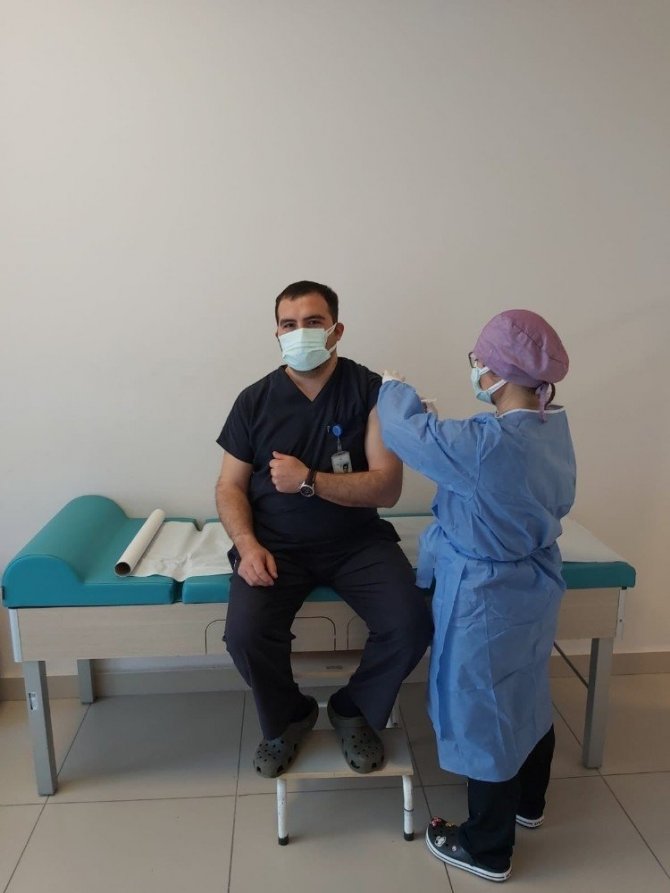 Sağlık Bakanı Dr. Fahrettin Koca'nın aşı olmasının ardından Edirne'de de sağlık çalışanlarına ikinci doz aşı uygulamaları başladı.