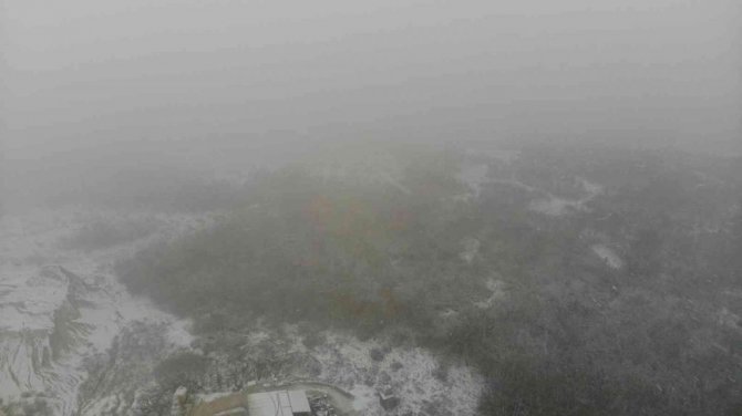 Edirne'nin yüksek kesimlerinde etkili olan kar yağışı nedeniyle beyaza bürünen yollar ve ağaçlık alanlar drone ile havadan görüntülendi.