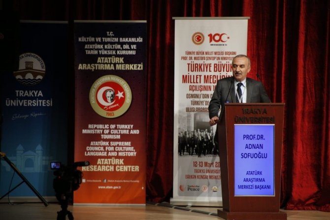 Atatürk Kültür, Dil ve Tarih Yüksek Kurumu bünyesindeki Atatürk Araştırma Merkezi Başkanlığı, Türkiye Büyük Millet Meclisi (TBMM) himayelerinde ve Trakya Üniversitesi Rektörlüğü ev sahipliğinde Edirne’de ‘Türkiye Büyük Millet Meclisinin Açılışının 100. Yılı: Osmanlı’dan Cumhuriyet’e Türkiye’de Demokrasi’ uluslararası sempozyumu düzenledi. Trakya Üniversitesi Balkan Yerleşkesi Balkan Kongre Merkezi’nde saygı duruşu, İstiklal Marşı’nın okunması ve Dr. Öğr. Üyesi Sela Can Dökmeci şefliğinde Balkan Gençlik Senfoni Orkestrası’nın müzik dinletisi ile başlayan sempozyum, Trakya Üniversitesi Atatürk İlkeleri ve İnkılâp Tarihi Araştırma ve Uygulama Merkezi Müdürü Doç. Dr. Nurten Çetin, Atatürk Araştırma Merkezi Başkan Vekili Prof. Dr. Adnan Sofuoğlu ve Trakya Üniversitesi Rektörü Prof. Dr. Erhan Tabakoğlu’nun açış konuşmaları ile devam etti. Doç. Dr. Nurten Çetin TBMM’nin açılış sürecinden bahsederken, Prof. Dr. Adnan Sofuoğlu ise 1908 yılında ilan edilen ikinci Meşrutiyet’in Türk demokrasisinin gelişmesine önemli katkı sağladığını, günümüzün modern çağında demokrasinin daha çok ‘temsili’ olduğunu dile getirdi. Birinci Dünya Savaşı ve ardından verilen Milli Mücadele yıllarında Ankara’da tüm olumsuzluklara rağmen TBMM’nin 23 Nisan 1920’de toplandığını kaydeden Sofuoğlu, sözlerine şöyle devam etti:
