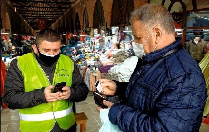 Edirne'de son günlerde artış gösteren korona virüs vakaları nedeniyle çeşitli tedbirler alınmaya devam ediliyor. Saraçlar Caddesi'nin ardından Tarihi Alipaşa Çarşısına girişlere de HES kodu zorunluluğu getirildi.