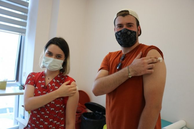 Aşı olmaya gelen vatandaşlardan Öykün Uçkun, "Heyecanlıydım, aşımı olmaya geldim ve aşı oldum. Heyecanla sıramın gelmesini bekliyordum sıram geldi ve aşımı oldum, herhangi bir acı veya ağrı hissetmedim" dedi.