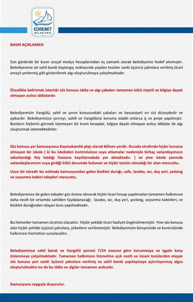 Edremit Belediyesi asılsız iddiaları yalanladı