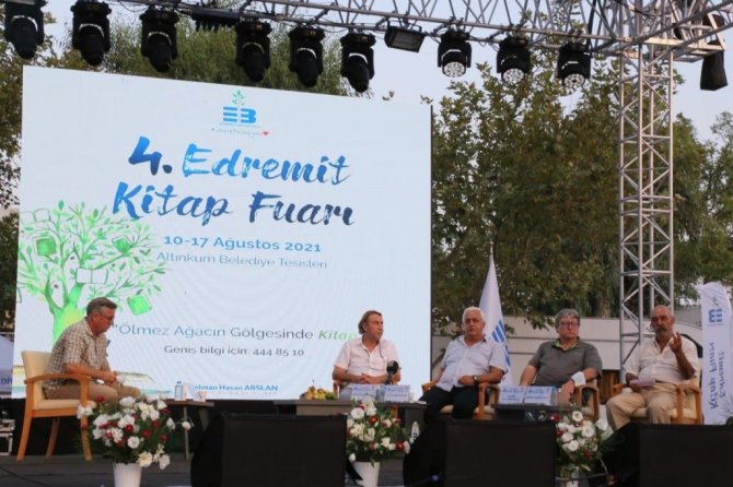 Edremit Kitap Fuarı'nın ikinci gününde Balıkesir Üniversitesi Edremit Sivil Havacılık Yüksek Okulu Müdürü Prof. Dr. Abdullah Soykan, Ulusal Zeytin ve Zeytinyağı Konseyi Yönetim Kurulu Başkanı Dr. Mustafa Tan, Edremit Ziraat Odası Başkanı Ali Yılmaz Diker, Turizmci İş insanı Murat Bostancıoğlu ve Tarihçi Sinan Kahyaoğlu Edremit'in 3T'sini (Tarih, Turizm, Tarım) konuştular. Tarihi, turizmi ve tarımıyla Edremit'in tüm gerçeklerinin anlatıldığı program büyük beğeniyle izlendi.
