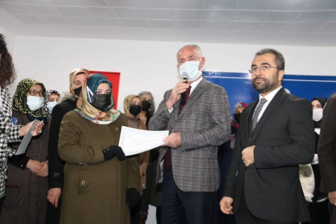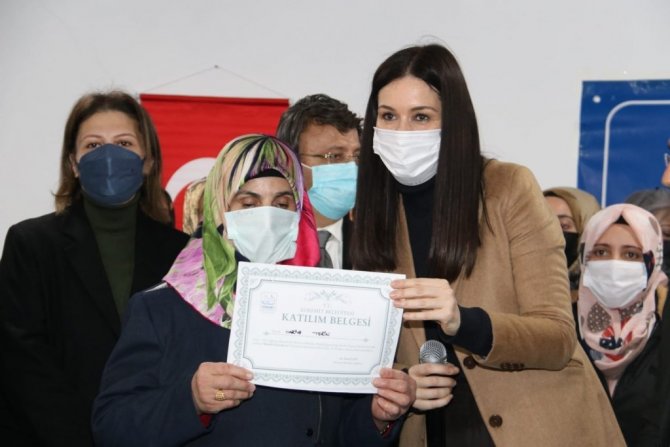 Yapılan konuşmaların ardından meslek edindirmeye yönelik ahşap, el sanatları, biçki-dikiş, takı tasarım ve tığ örgü, makine nakışı, iğne oyası, bilgisayar, İngilizce, okuma-yazma ve bağlama eğitimlerini tamamlayan kursiyerlere sertifikaları verildi.