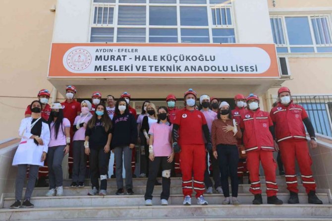 Efeler Belediyesi Arama Kurtarma Ekibi (EFAK), Murat-Hale Küçükoğlu Mesleki ve Teknik Anadolu Lisesi'nde öğrenciler ve öğretmenlerin de katıldığı deprem...