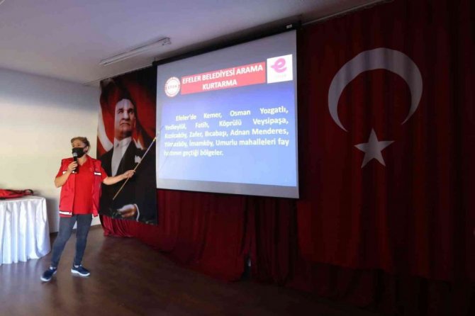 Eğitimde ayrıca Efeler Belediyesi tarafından belirlenen ilçedeki 76 adreste belirlenen acil toplanma alanının ve Aydın ilinin deprem haritasıyla birlikte, Efeler'deki yüksek deprem riski olan mahallelerin bilgisi de paylaşıldı.