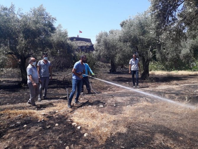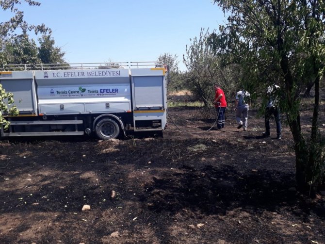 Bugün öğleden sonra meydana gelen ve kısa süreli paniğe sebep olan yangına Efeler Belediyesi'nin Park ve Bahçeler, Temizlik İşleri ve Fen İşleri Müdürlüğü ekipleri hızla müdahalede bulundu. Alınan ihbar üzerine harekete geçen ekipler 4 arazöz ve 1 iş makinesi ile alevlerin yükseldiği zeytinlik alana müdahale etti. Gerçekleştirilen özverili mücadele ile alevler kısa sürede kontrol altına alındı. Yangının söndürülmesinin ardından soğutma çalışmalarıyla tehlike ortadan kaldırıldı.