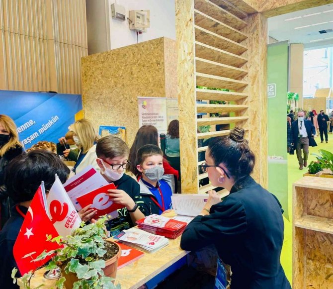 Dünyada ilk kez düzenlenen Ekonomi ve İklim Değişikliği Zirvesi ve Fuarı'nda Efeler Belediyesi de yer aldı. Efeler Belediyesi'nin tamamen geri dönüştürülebilen malzemelerle kurulan standı ziyaretçilerin yoğun ilgisini çekti.