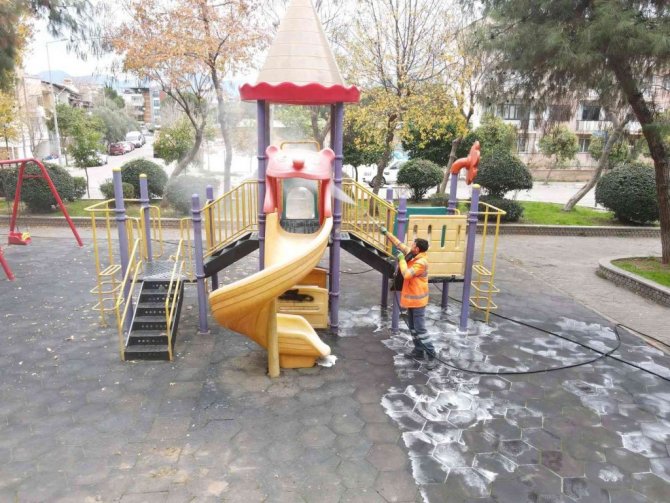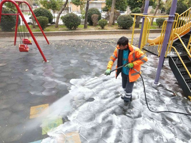 Efeler Belediyesi daha temiz bir çevre oluşturmak ve halk sağlığı için, ilçe genelinde gerçekleştirdiği temizlik çalışmalarına hız verdi. Bu kapsamda görev alan Efeler Belediyesi Temizlik İşleri Müdürlüğü ekipleri Başkan Mehmet Fatih Atay'ın talimatıyla belediyenin sorumluluk alanında bulunan tüm parkları mobil yıkama araçları kullanıp köpüklü ve tazyikli suyla yıkıyor. Ekipler, çocukların ve ailelerin dinlenip, eğlenip, temiz hava aldıkları parkları dip bucak temizliyor; parklardaki oturma alanları ve oyun gruplarını özel karışımların kullanıldığı buharlı sularla dezenfekte ederek vatandaşların kullanımına sunuyor.
