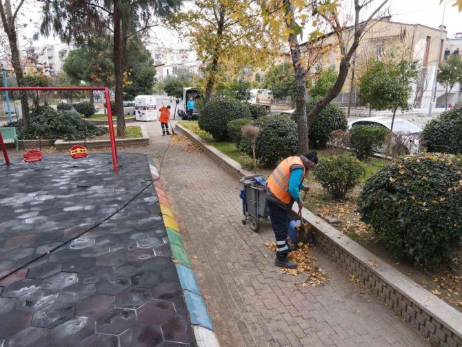 Efeler Belediyesi parklardaki temizlik çalışmalarını aralıksız sürdürüyor