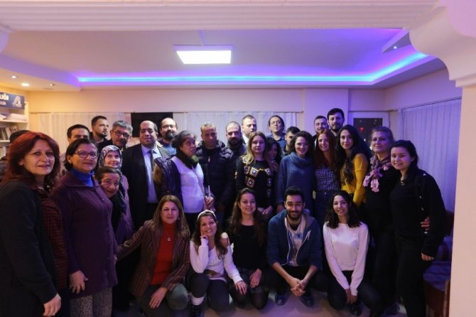 Okuma tiyatrosu oyunu bittikten sonra Efeler Belediyesi Şehir Tiyatrosu ekibi, Altı Nokta Körler Derneği üyeleri ile günün anısına hatıra fotoğrafı çekildi.