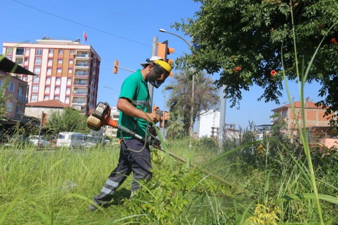 Efeler Belediyesi Park ve Bahçeler Müdürlüğü ekipleri, hava sıcaklıklarının artmasıyla birlikte hızla büyüyen yabani otlara yönelik temizleme çalışmasını kentin dört bir yanında sürdürüyor. Bu kapsamda Efeler'in yeşil ekipleri olarak bilinen Park ve Bahçeler Müdürlüğü çalışanları, Umurlu Mahallesi'ndeki Efeler-Nazilli Karayolu'ndaki ve Efeler-Çine Karayolu'ndaki refüjlerde ot temizliği işlerini tamamladı.