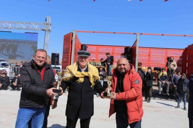 Kazanan develerin sahiplerine kupalarını takdim eden Başkan Atay, alana gelen vatandaşlarla sohbet ederek poşu dağıttı.