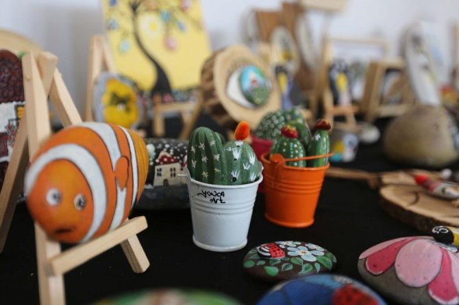 “Taşların Hikayesi” konulu sergi, Türk Kadınlar Birliği Aydın Şubesi’nin daveti ile Ödemiş’ten Efeler’e gelen usta sanatçı Ayşen Uşarer’in taşlardan oluşturduğu ve özel boyama-birleştirme tekniği ile meydana getirdiği 250 esere ev sahipliği yapıyor.