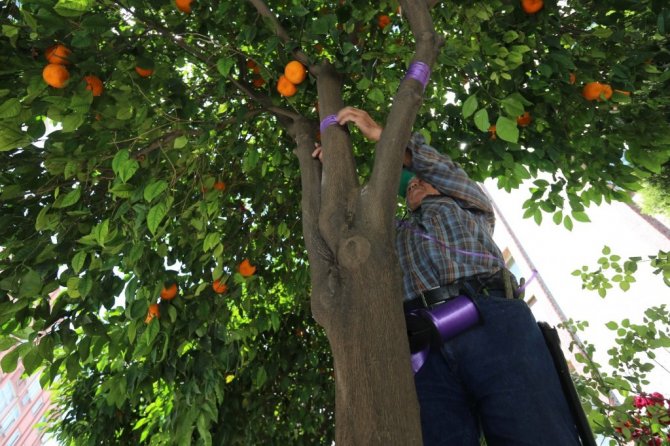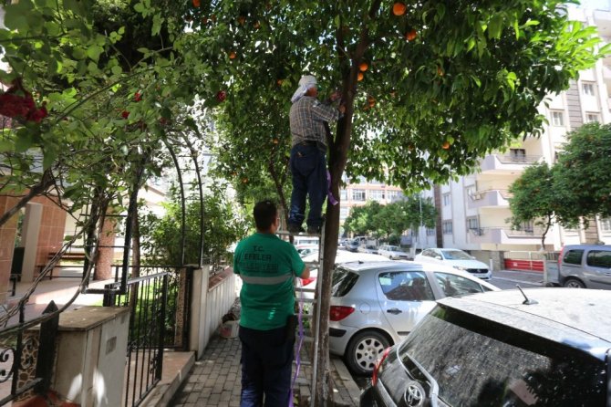 Efeler Belediye Başkanı Mehmet Fatih Atay'ın talimatıyla, Efeler Belediyesi'nin görev ve sorumluluk alanındaki tüm sokakların bir tarafındaki turunç ağaçlarına, limon aşılaması yapılıyor.