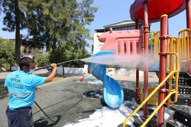 Efeler Belediyesi sorumluluk alanındaki parklarda bakım ve yenileme çalışmalarını ara vermeden sürdürüyor.