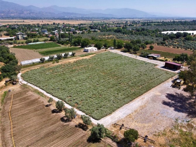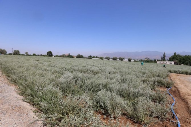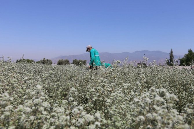 Efeler Belediyesi'nin Şahnalı Mahallesi'nde bulunan kendisine ait tarım arazisinde yetiştirdiği kekikler, hasada hazırlanıyor.