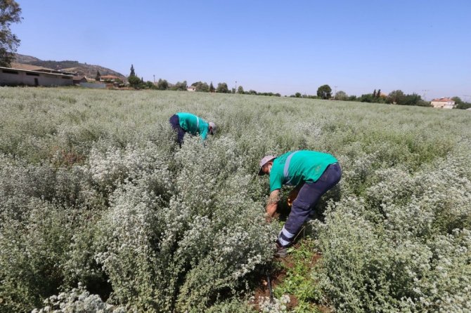 Efeler Belediyesi Park ve Bahçeler Müdürlüğü ekipleri, hasattan önce kekik tarlasında yabancı ot mücadelesi, gübreleme çalışması, çapalama ile toprak havalandırması gibi çalışmaları titizlikle gerçekleştirdi. Damla sulama sistemi ile sulama çalışmalarının özenle yapıldığı kekik tarlasında, artan sıcaklıklardan dolayı sulama süreleri de uzatıldı.