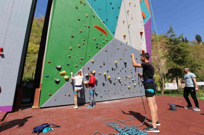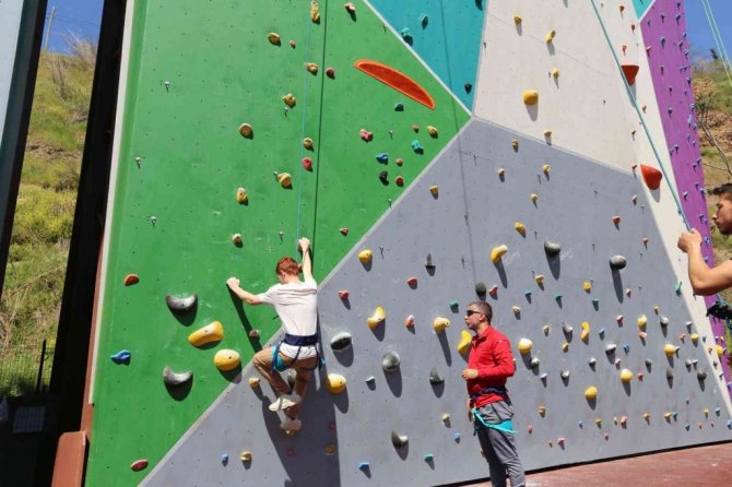 Türkiye'de açık alandaki ilk tırmanma duvarı, Letonya'da gerçekleştirilecek Açık Alan Duvar Tırmanış Turnuvası'nda Türkiye'yi temsil edecek olan Nazilli Özel Eğitim Meslek Okulu öğrencilerini ağırladı.