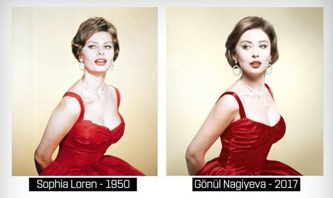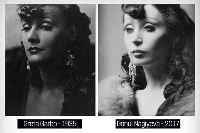 Sinema oyuncusu Gönül Nagiyeva, 1930-1950’li yılların efsane kadın sanatçıları olan Ava Gardner, Sophia Loren, Greta Gabro, Audrey Hepburn ile opera sanatçısı Maria Callas’ı canlandırdı.