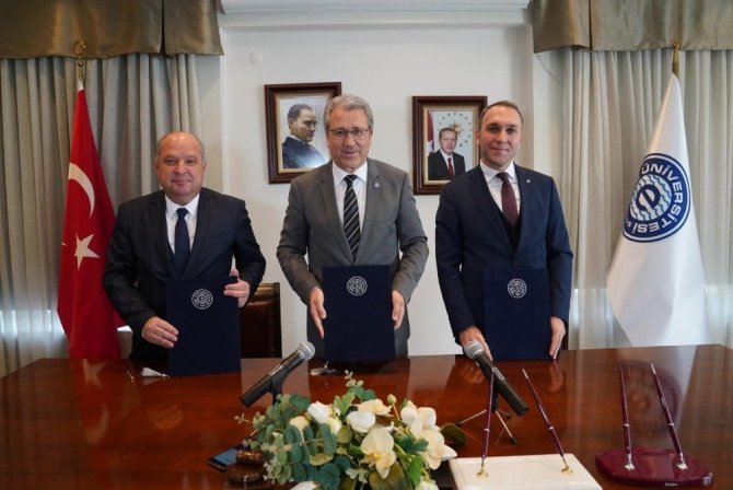 Ege Üniversitesi (EÜ), öğrencilerinin mezun olduktan sonra da iş bulma konusunda sıkıntı yaşamaması için kurum ve kuruluşlarla yaptığı işbirliklerini genişleterek sürdürüyor. Bu kapsamda EÜ Havacılık Meslek Yüksekokulunda eğitim gören öğrencilerin, THY Teknik A.Ş. bünyesinde İŞKUR desteğiyle istihdam edilmesine yönelik işbirliği protokolü yapıldı. Protokol imza töreni, EÜ Rektörlük hizmet binasında yapıldı. Törene, EÜ Rektörü Prof. Dr. Necdet Budak, rektör yardımcıları, THY Teknik A.Ş. İnsan Kaynakları Başkanı Yakup Arslan, İzmir İŞKUR İl Müdürü Kadri Kabak ve EÜ Havacılık MYO’dan öğretim elemanları katıldı. Protokol; Rektör Prof. Dr. Budak, THY Teknik A.Ş. adına Arslan ve İzmir İŞKUR İl Müdürü Kabak tarafından imzalandı. Protokol kapsamında, üç kurumun işbirliğinde mesleki eğitim kurslarının açılması, yüksekokul öğrencilerinin uçak bakım teknisyeni olarak THY’de İŞKUR’un da desteğiyle istihdam edilmesi planlanıyor.