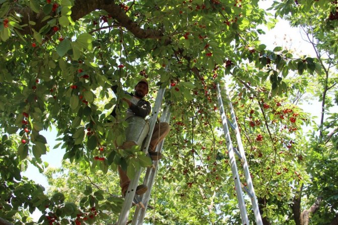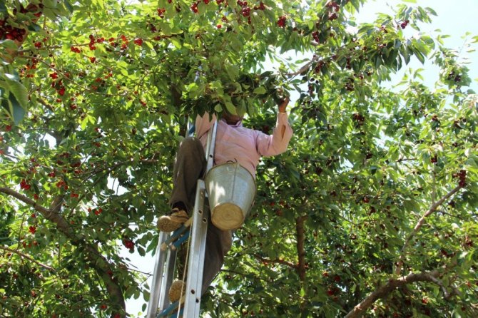 Menderes Ovası'nda mayıs ayı ortalarında başlayan kiraz hasadı, havaların ısınması ile birlikte Aydın ve İzmir yaylalarında devam ediyor.