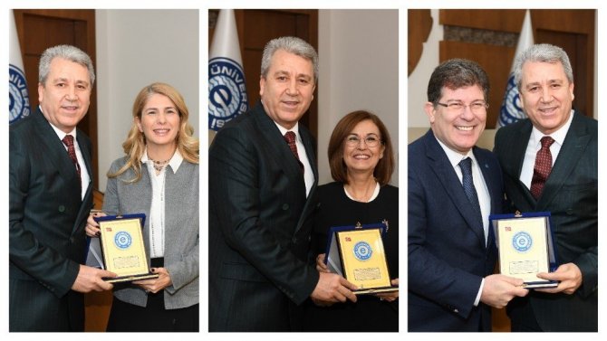 Rektör Budak konuşmasının ardından Ege Üniversitesi Rektör Yardımcıları Prof. Dr. Cengiz Metin, Prof. Dr. Makbule Aşıkoğlu ve Prof. Dr. N. Ülkü Karabay Yavaşoğlu’na plaketlerini sundu. Plaketini alan Prof. Dr. Cengiz Metin, “Bundan sonra öğretim üyesi olarak görevimize dönüyoruz. Rektör Hocamız bizi onore etti. Tek teminnimiz buradan gittikten sonra, buraya rahat rahat gelebilmekti. Bunun için de ayrıca teşekkür ederim” diye konuşurken Prof. Dr. Makbule Aşıkoğlu ve Prof. Dr. Nefise Ülkü Yavaşoğlu da “Başta hocamız olmak üzere tüm senato üyelerine, beraber çalıştığımız hocalarımız ve arkadaşlarımıza desteklerinden ötürü teşekkür ederim” diyerek teşekkür etti.