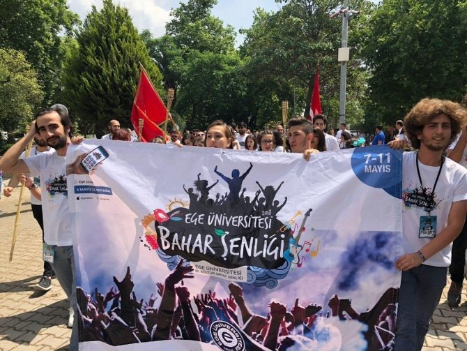 Ege Üniversitesi’nde 39. Bahar Şenlikleri uzun bir aradan sonra coşkulu başladı. Zübeyde Hanım Kız Öğrenci Yurdu önünde startı verilen şenliğe, Ege Üniversitesi Rektörü Prof. Dr. Necdet Budak, Rektör Yardımcıları Prof. Dr. Kutsal Turhan, Prof. Dr. Canan Fisun Abay, Prof. Dr. Mehmet Ersan, EÜ Senato Üyeleri, akademisyen ve öğrenciler katıldı. Öğrencilerin yoğun ilgi gösterdiği yürüyüşte çok renkli anlar yaşandı. Kortej halinde Onuncu Yıl Marşı ve İzmir Marşı eşliğinde devam eden yürüyüş Şölen Alanında tamamlandı.