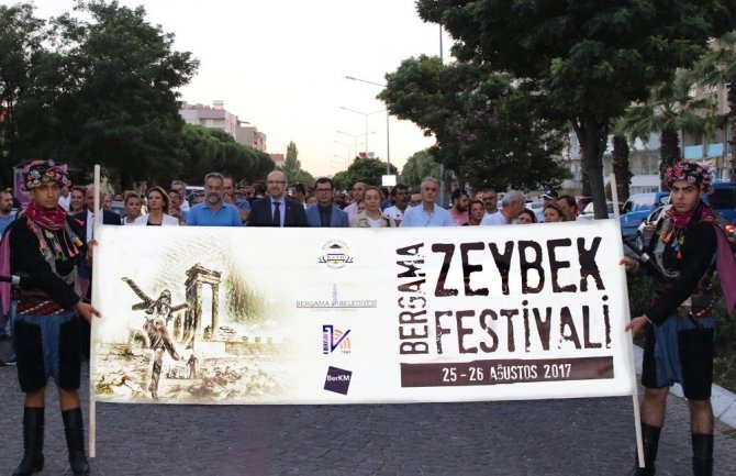 Yapılan etkinliklerin ardından Maltepe Mahallesindeki Atatürk Kapalı Spor Salonu önünden Cumhuriyet Meydanına kadar Bergama Zeybek Festivali kortej yürüyüşü yapıldı. Yürüyüş sonrası Cumhuriyet Meydanında saygı duruşu ve İstiklal Marşı sonrası açılış konuşmalarına geçildi. Burada konuşma yapan Bergama Belediye Başkanı Mehmet Gönenç, festivalin 26 Ağustos seçilme nedenini anlatarak, "Bugün Bergama’da efe sesi var; ama Bergama’da, Anadolu’da, Ege’de yüzyıllardır efe sesi var. Onların ayak sesi var. Onarın diz vuruşları var. Onların geçmişten günümüze gelen destansı öyküleri, onların kültürüne, felsefesine ayrı bir bağlılık yaratıyor. Hep haksızlığa karşı durmuşlar. Vatanlarına, topraklarına, namuslarına bir el uzandığında dimdik duruşlarıyla bütün bu adaletsizliklerin önüne geçmişler. O yüzden bu ülkenin insanları onları bir başka seviyor. Bugün de biz Zeybek Festivalini anlamlı bir günde başlamasını istedik. Bu yüzden tarih olarak 26 Ağustos’u seçtik. 26 Ağustos bir başka efenin, bu toprakların, bu ulusun büyük kurtarıcısı, şayak kalpaklı, mavi gözlü, sarışın dev adamın büyük taarruzu başlattığı akşam. Tam 95 yıl önce şafak sökerken, sabaha karşı Kocatepe’de başlayan büyük direnişin, 30 Ağustos Zaferiyle taçlandığı gün. Bu zaferden sonra Türk ulusunun eşsiz ve ebedi başkomutanı doğmuştu. Cumhuriyet’in kurulmasıyla da birlikte aydınlık günler başladı. Bugün hala cumhuriyetin bize sunduğu erdemlerle yaşıyoruz” dedi.