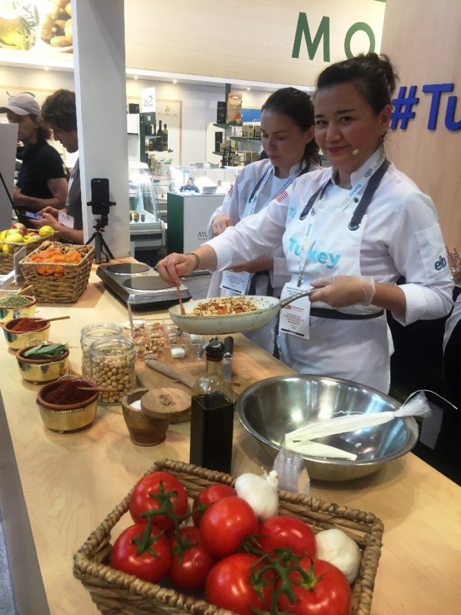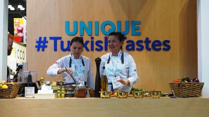 Türkiye Milli Katılım Organizasyonu’nu Ege İhracatçı Birlikleri’nin yaptığı New York Summer 2019 Fancy Food Show Fuarı’nda Türkiye Markası standında pişirim ve tadım etkinliği, Au Mas Turque şefi olan Özlem OĞUZCAN CRANSTON tarafından gerçekleştirildi. Cranston, günde 3 seans halinde en önemli gıda ihraç ürünlerimizi içeren menülerin tadımları gerçekleştirirken, sunumu yapılan yemek tarifleri küçük bilgi kartlarında ziyaretçilere dağıtıldı. Amerikalılar, Türk lezzetlerine hayran kaldı.