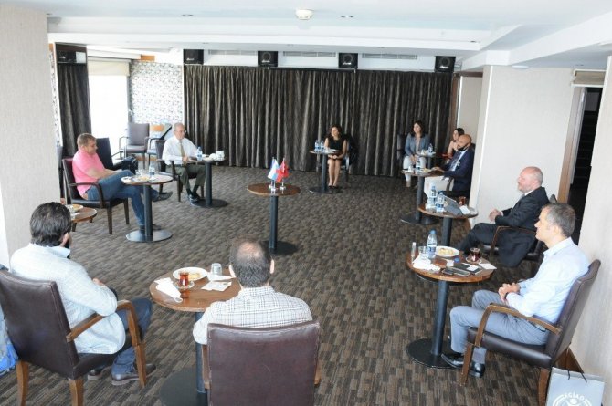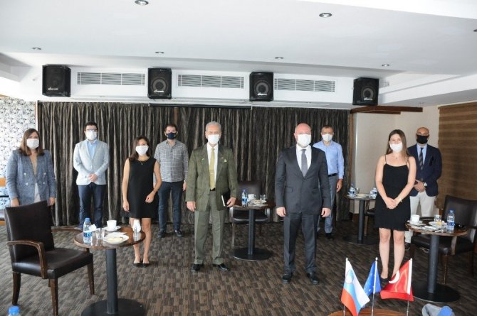 Slovenya Cumhuriyeti Ankara Büyükelçisi Primoz Seligo ve İzmir Slovenya Fahri Konsolosu Mazhar İzmiroğlu ile bir araya gelen Ege Genç İş İnsanları Derneği (EGİAD) Başkanı Mustafa Aslan, Slovenya ve İz...