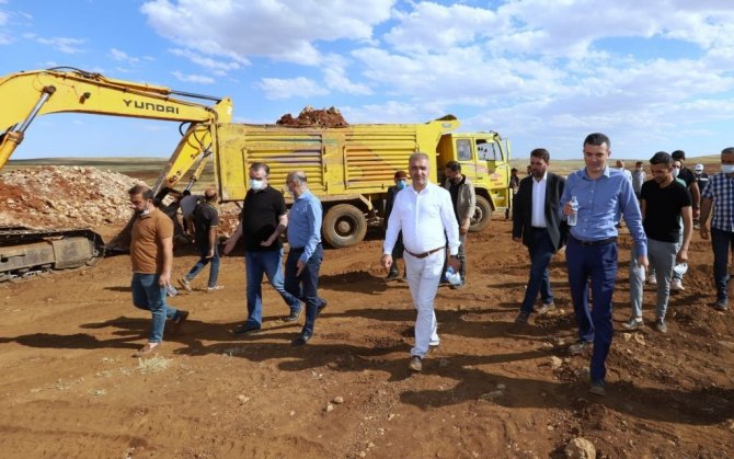 Diyarbakır Büyükşehir Belediyesi, Eğil ilçesi Yukarı Haydan Mahallesi Kanalizasyon Projesi çalışmaları kapsamında ilk kazmayı vurdu.