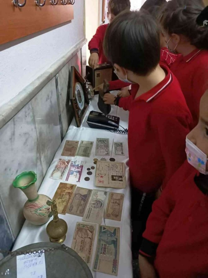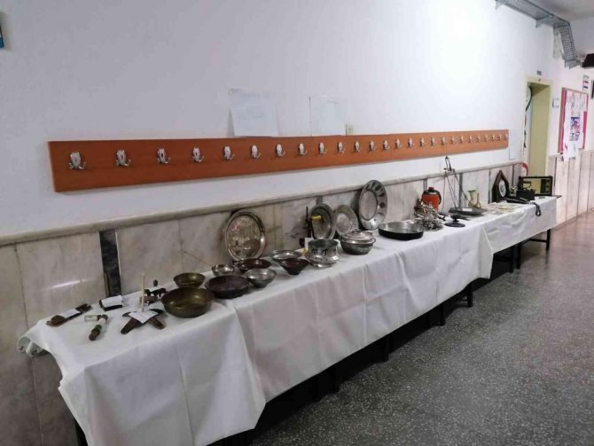 Sergiyi gezen diğer sınıf öğrencileri geçmişte kullanılan mutfak eşyaları, kıyafetler, ev eşyaları ve paraları daha yakından tanıma fırsatı buldu. Sergide bir öğrencinin büyük dedesine ait nüfus cüzdanı, baston, kömürlü ütü, gaz lambası, Isparta halısı, ibrik, bavul, kahve değirmeni ve bakır ürünler öğrenciler tarafından ilgiyle incelendi.