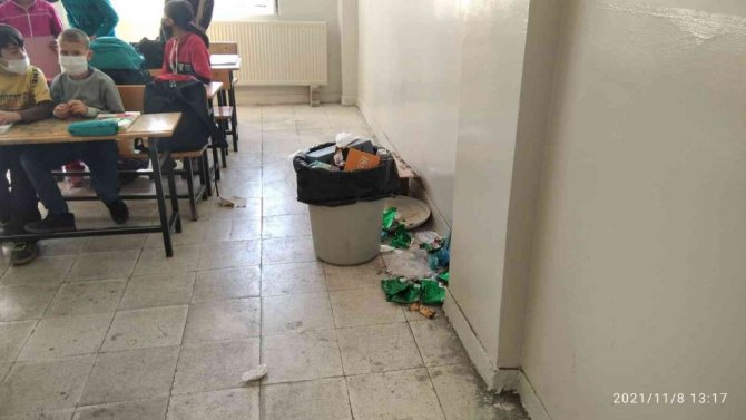 Konu ile alakalı cep telefonu kamerasına yansıyan görüntülerde tuvaletlerin yıkanmadığı, sınıf içindeki çöplerin yere kadar taştığı ve öğrencilerin mont giyip birbirlerine sarılarak ısınmaya çalıştığı görülüyor.