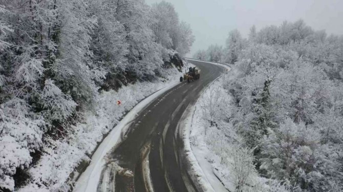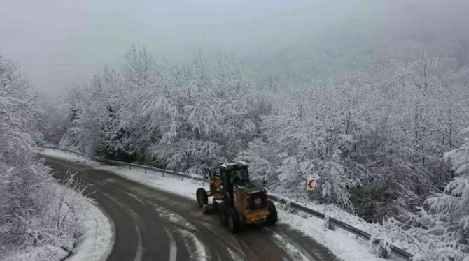 Öte yandan ekiplerin kar ile mücadelesi drone ile havadan da görüntülendi.