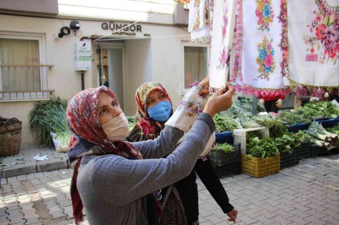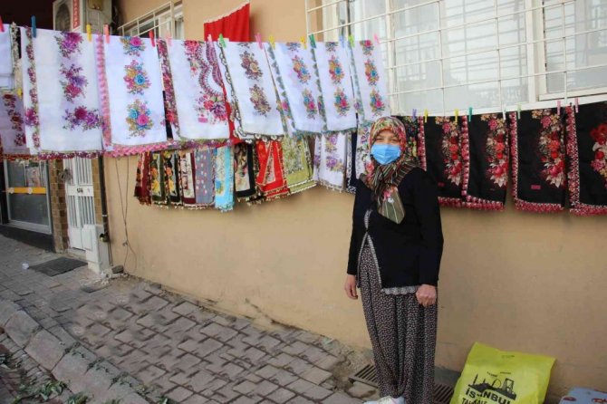 Aydın'ın Efeler ilçesinde yaşayan 55 yaşındaki Sevil Cengiz el emeği, göz nuru el oyası ürünlerini semt pazarlarında vatandaşların beğenisine sunup aile bütçesine katkı sağlıyor.