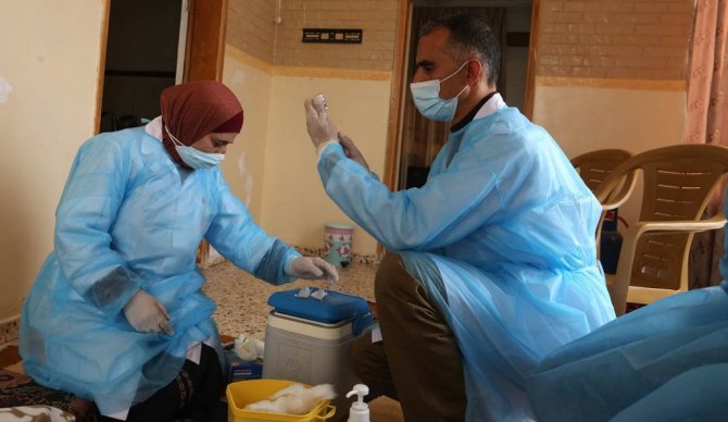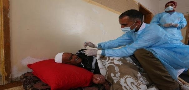 Dünya genelinde yeni tip korona virüsle (Covid-19) mücadele devam ederken işgal altındaki Batı Şeria'nın El Halil kentinde 75 yaş ve üstü evlerinde aşılanıyor. Filistin Sağlık Bakanlığı'na göre, yaşlıların sağlığını korumak ve aşılama merkezlerinde fazla kişi ile teması azaltmak amacıyla yaşlıların evlerine özel sağlık ekipleri gönderiliyor. El Halil'in Dura ilçesindeki yaşlıların aşılamasında görev alan sağlık personeli Adel Amer, "El Halil'deki Filistin Sağlık Bakanlığı'nın çabaları kapsamında hem 75 yaş ve üstü hem de sağlık durumları nedeniyle evlerinden ayrılamayan yaşlılara aşı yaptık. Herhangi bir şey yapmalarına gerek yok, biz onların evlerine kadar geldik" ifadesini kullandı.