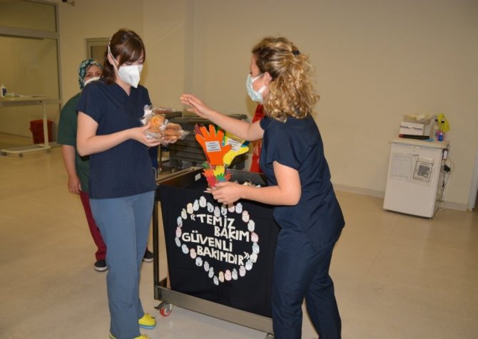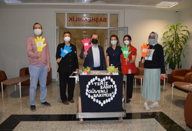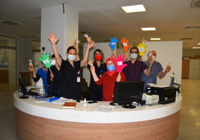 Çok sayıda ölümlere yol açan Covid-19 salgınında el temizliğinin önemine dikkat çekmek için Manisa Merkezefendi Devlet Hastanesinde etkinlik düzenlendi. Hastane yemekhanesinde el şeklinde yaptırılan kurabiyeler, hastane personeline ve hastalara dağıtılarak farkındalık oluşturulmaya çalışıldı. Ayrıca, yoğun bakım servislerinde görevli personele el dezenfektanı da dağıtıldı. Enfeksiyon Hemşireleri Süheyla Bastem ve Yıldız Özcanoğlu tarafından hastalara el hijyeninin önemi anlatılarak, el hijyenine dikkat edilmesinin birçok hastalığın önüne geçtiği belirtildi.